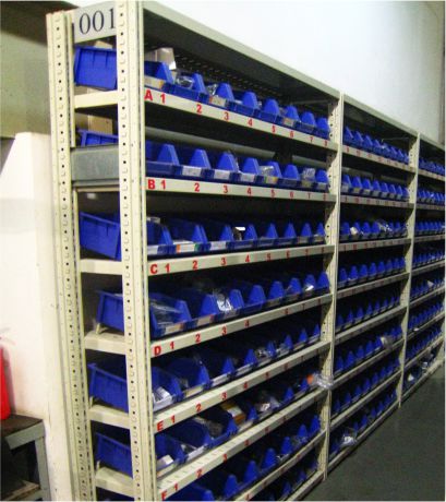 主要部件為冷板鈑金而成,可以按50mm步距自由上下調(diào)整,為便于人工存取貨物,貨架總高度最多可達(dá)3米?蓡为(dú)使用,也可自由拼接成各種排列形式。