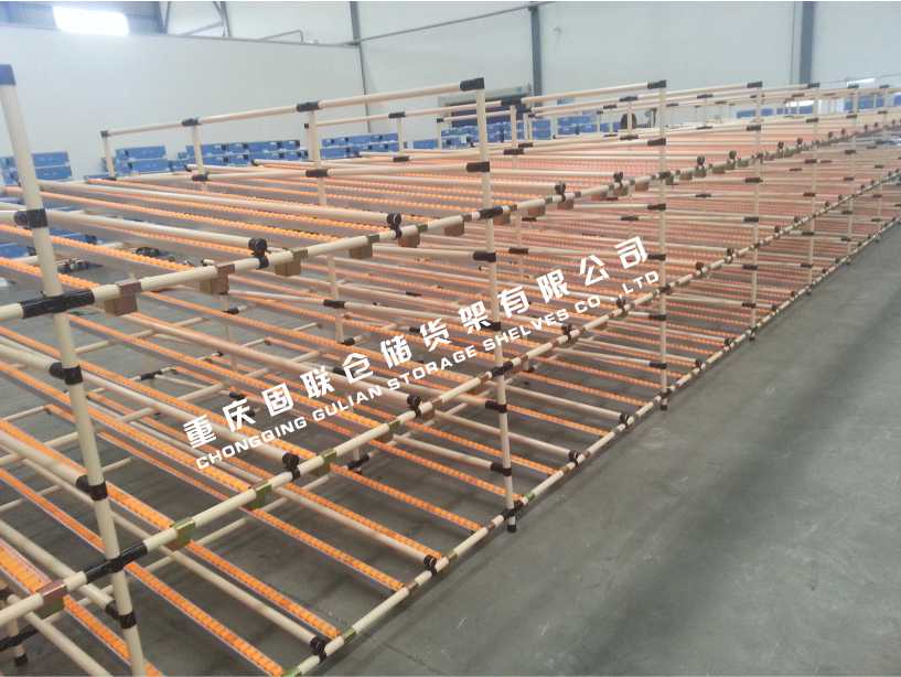 此库房重庆某汽车公司库房线棒式滑移货架。